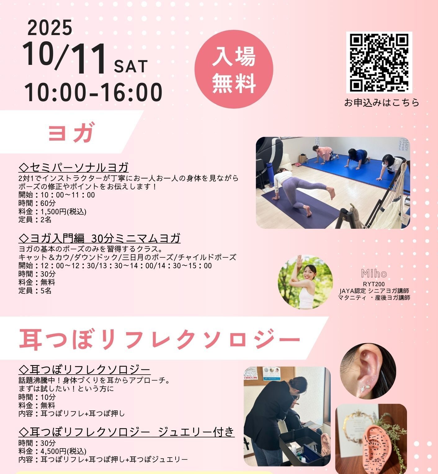 10月11日(土) 10:00~16:00 耳つぼリフレクソロ……