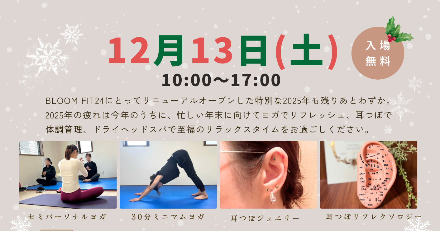 12月13日(土) 10:00~17:00 セミパーソナルヨガ 2対1で丁寧……